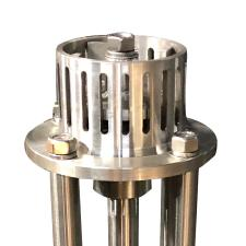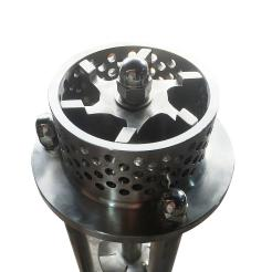 長孔型定子頭(標配):適用中等固體顆粒的迅速粉碎及中等粘度液體的混合,長孔為表面剪切提供了最大面積和良好的循環。定子頭尺寸10厘米。 圓孔定子頭:適用低粘度液體混合,其剪切速率最大,最適合于乳液的制備及小顆粒在液體中的粉碎、溶解過程。定子頭的尺寸10厘米