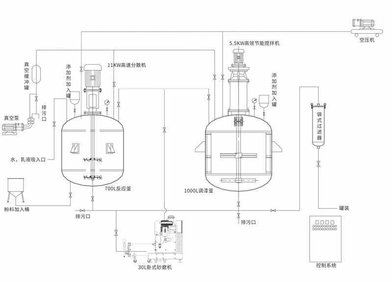 2調(diào)漆釜不銹鋼1臺(tái)1000L、抽真空