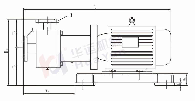 名稱 功率KW 轉速r/min 流量m3/h 揚程M L W1 H1 H2 H3 H4 H5 法蘭A 法蘭B kg
