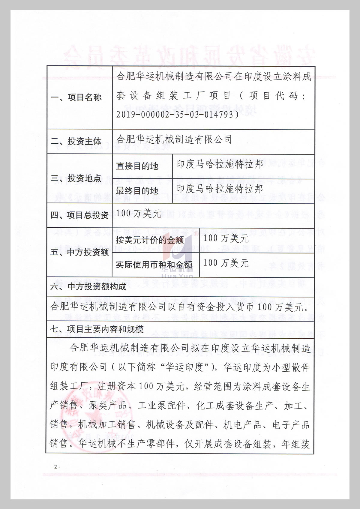 境外投資項目備案通知書